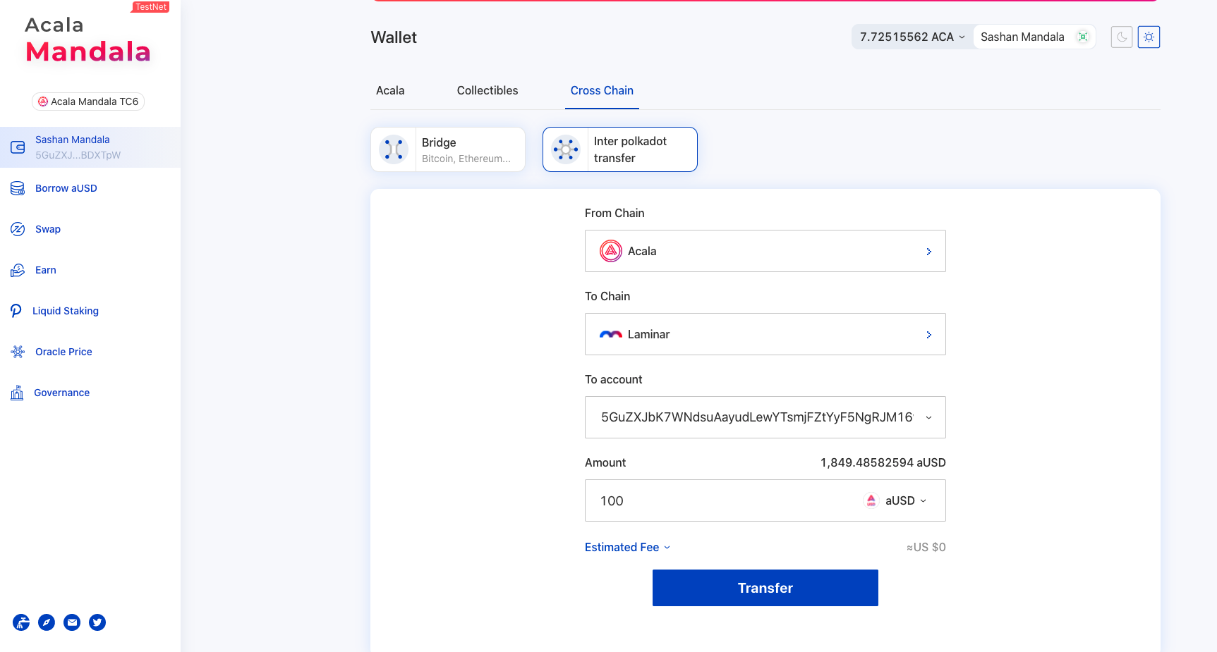 Transfer aUSD to Laminar Chain