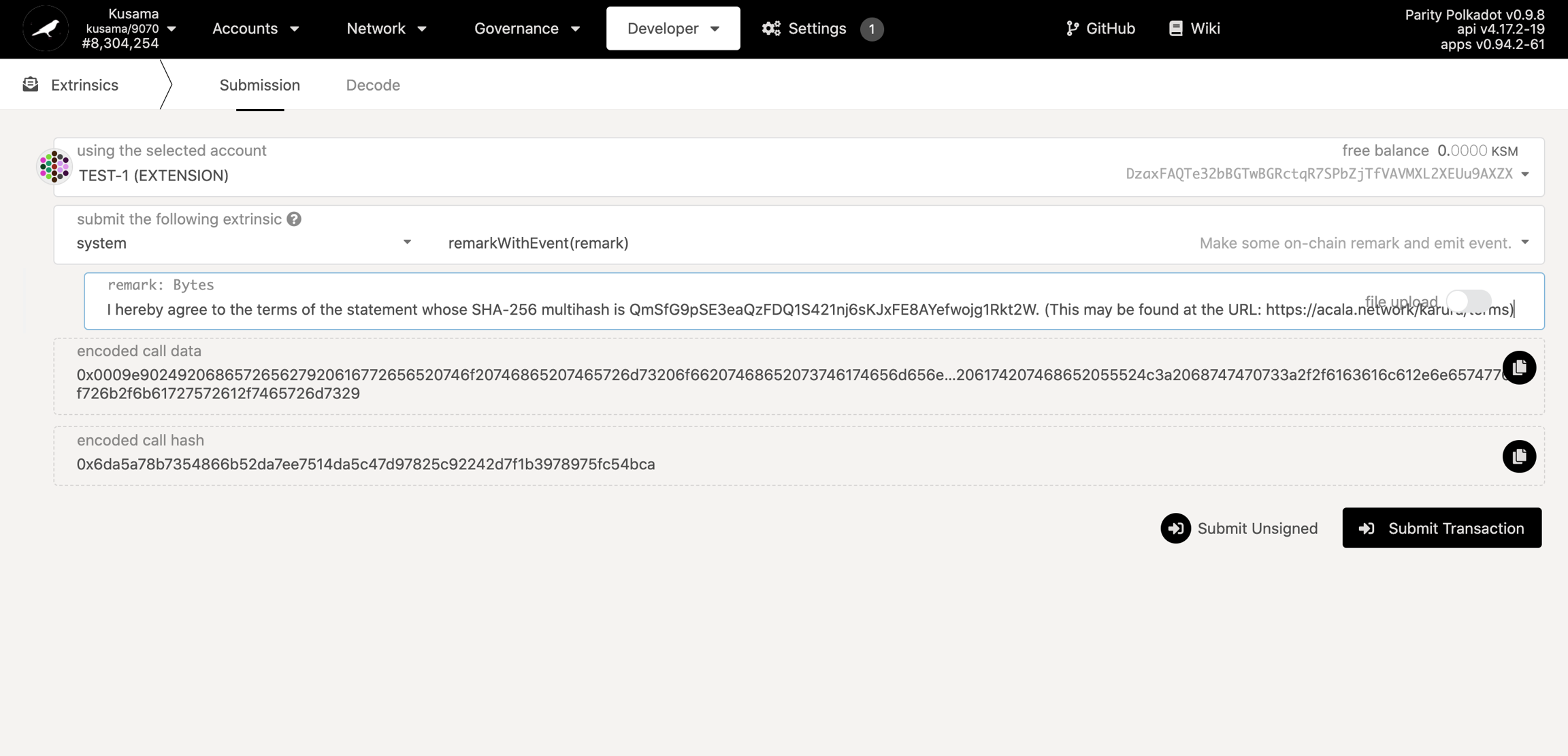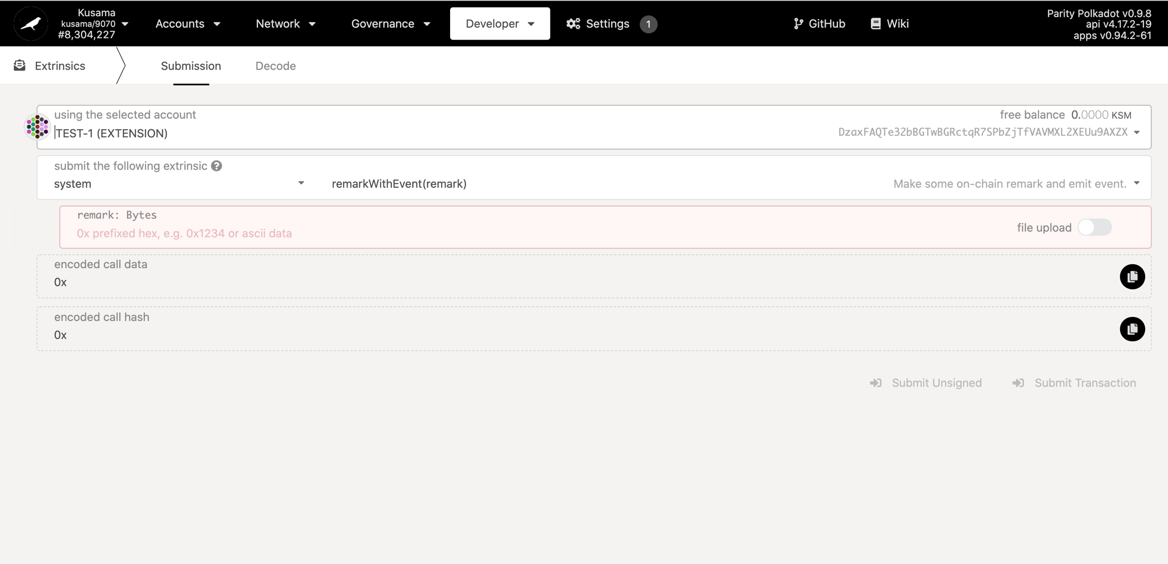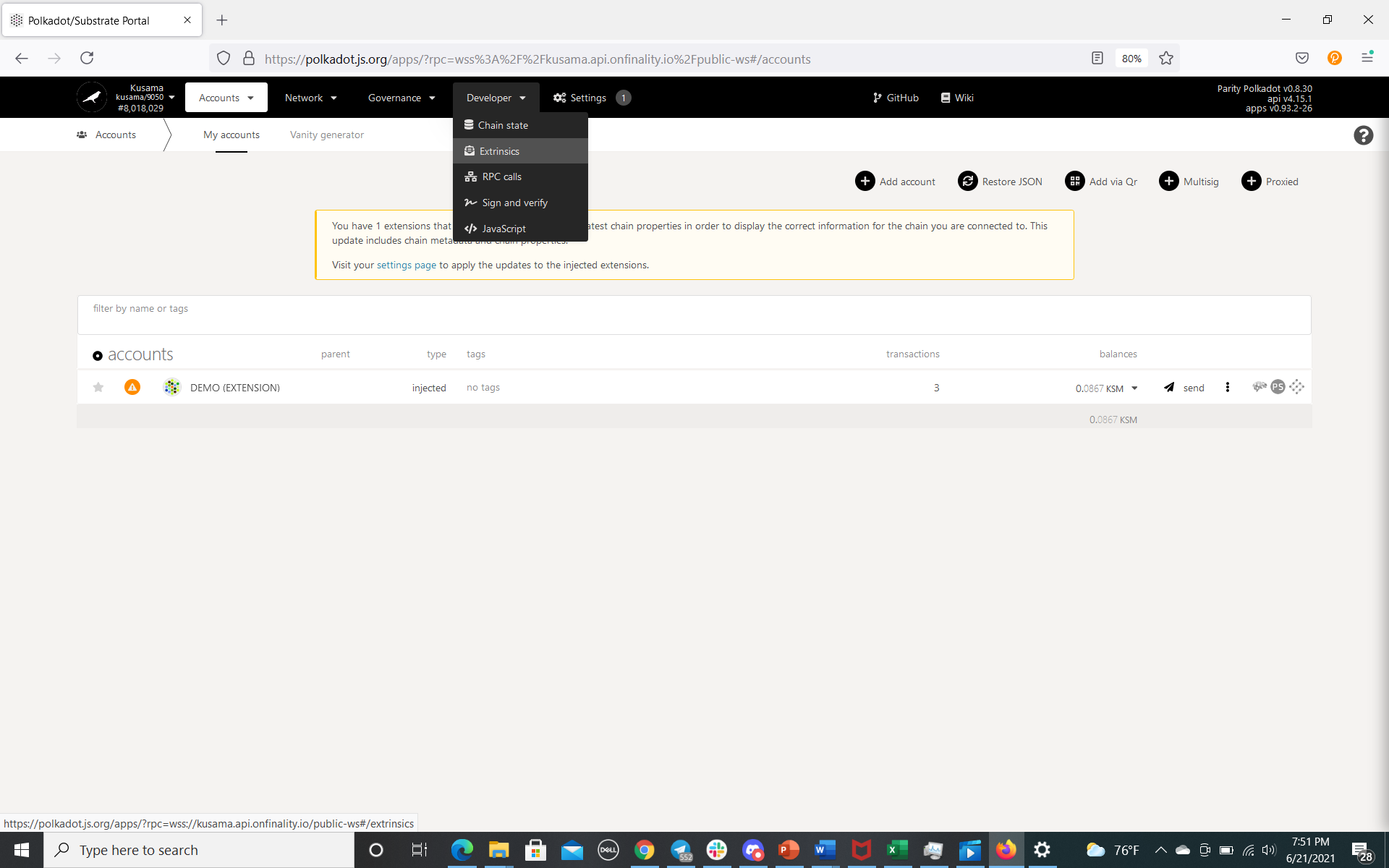 2. Go to the Developer-Extrinsics section