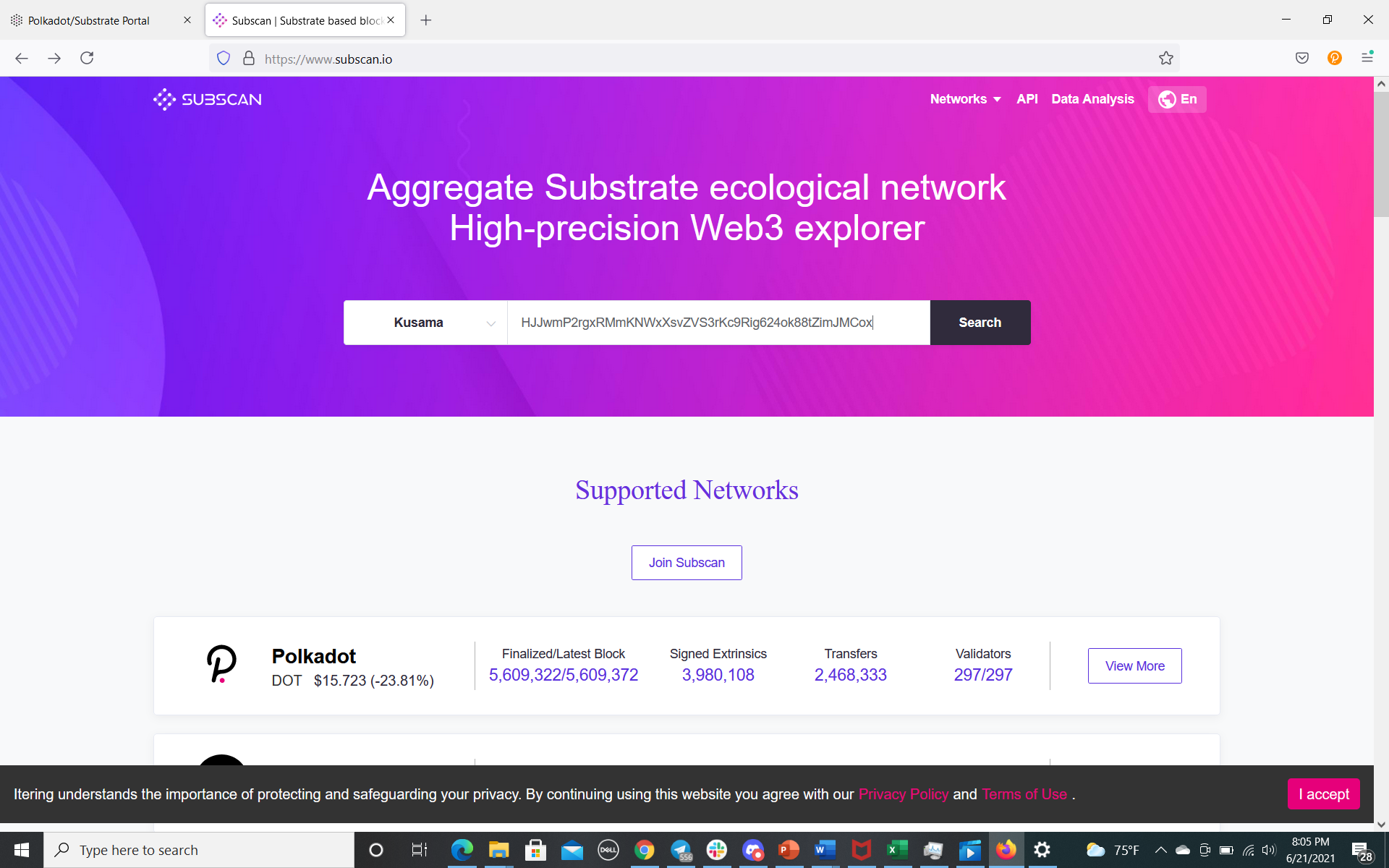 7. Your remark transaction has been submitted onto Kusama. You can view the signed remark on Kusama Subscan Explorer. Paste in your Kusama address used for sending the transaction.