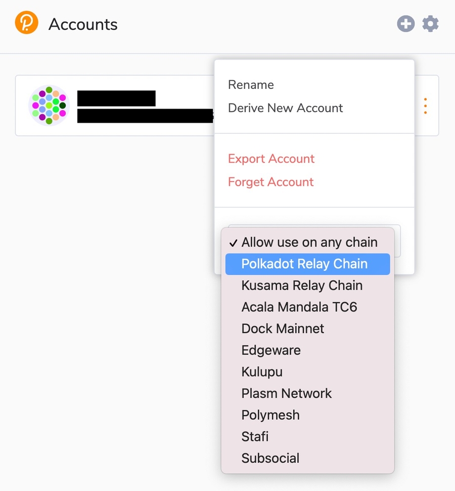 setting your wallets in polkadot.js extension